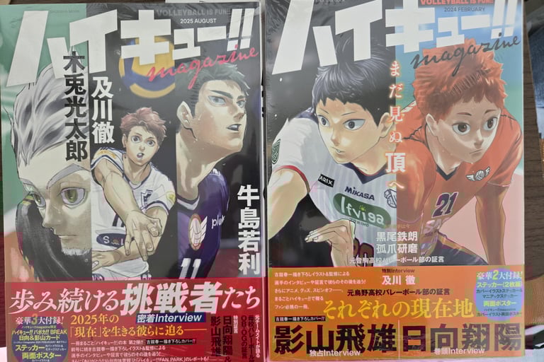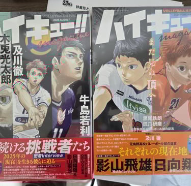 Si os gusta Haikyuu, os habréis fijado que en varias entradas del blog lo he mencionado, e incluso he nombrado a las entradas con frases de la serie... bueno, a pesar de saber más bien poco de japonés, no pude resistirme a comprarme estas dos revistas que imitan a una revista real de Volleyball... pero de Haikyuu!!
