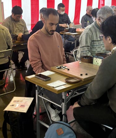 Lejos de terminar ahí el día, luego nos hemos vuelto a Nakamura Honinbo donde he jugado una partida de nuevo contra Cho-sensei, y luego he jugado contra un alumno más o menos principiante, al que le he dado 5H y le he conseguido ganar.