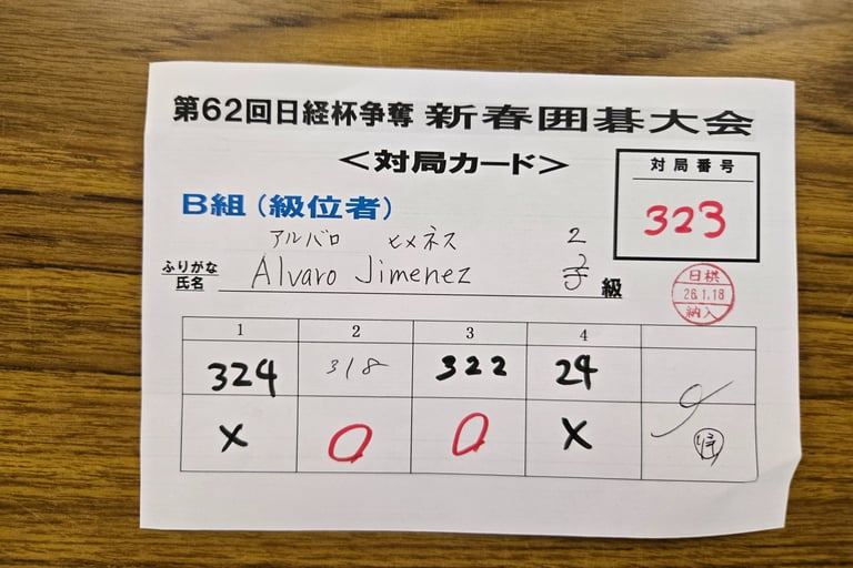 Al torneo he entrado como 2kyu, y nada más empezar, he perdido contra otro 2kyu. A este torneo nos hemos presentado varios de Nakamura Honinbo, creo que un total de 5 de nosotros. Sin embargo, todos hemos perdido la primera partida. Yo pensaba que íbamos a llegar por la puerta grande. Yo un poco sandbagger al no saber mi nivel, un par de 5D, una ex-insei 6D, y mi amigo que se estrenaba como 4D. Sin embargo, como ya conté en otra entrada, la realidad en el Go te golpea muy rápido.